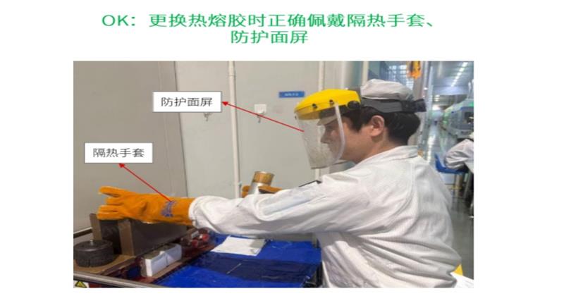 根據(jù)企業(yè)需求,識別安全作業(yè)時是否違規(guī)未穿戴防護裝置現(xiàn)存問題點:更換熱熔膠時,人員有時未按規(guī)范操作,易發(fā)生安全隱患,需現(xiàn)場語音提示并將該事件記錄解決方案:攝像機部署在工位上,識別人員手部有無佩戴隔熱手套,頭部有無佩戴防護面罩,若無觸發(fā)告警